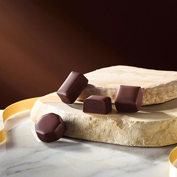 カカオ分80%以上のチョコレートを使用した、3種のカカオの個性を愉しめるボンボンショコラのアソート。正方形のペルー産は、なめらかなくちどけとシナモンのような華やかな風味が、余韻まで続きます。長方形のドミニカ産は、甘みと酸味のバランスがとれた、ほのかにフルーティーな味わいが広がります。多角形のガーナ産は、重厚なカカオの風味とくちどけが織りなす、王道の味わいが愉しめます。